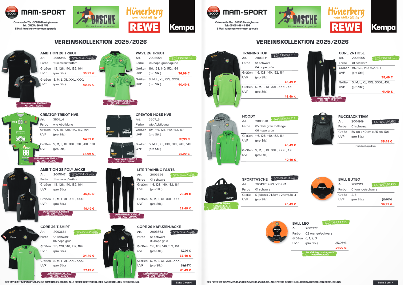 Wir freuen uns, Euch die neue HVB-Winterkollektion für die Saison 2025/26 präsentieren zu dürfen. Vom 15.10.-31.10. habt Ihr die Möglichkeit euch für die kalte Jahreszeit neu auszusatten. Ein letztes Mal dabei: unser tolles HVB-creator-Trikot! Das Modell läuft zum Ende des Jahres aus und ihr habt letztmalig die Möglichkeit euch euer personalisiertes Trikot zu sichern. Den Flyer für die neue Kollektion gibt es hier. Bei unserem Partner „mam-Sport“ könnt ihr euch wie immer kompetent beraten lassen, die Klamotten anprobieren und Eure Bestellung aufgeben.